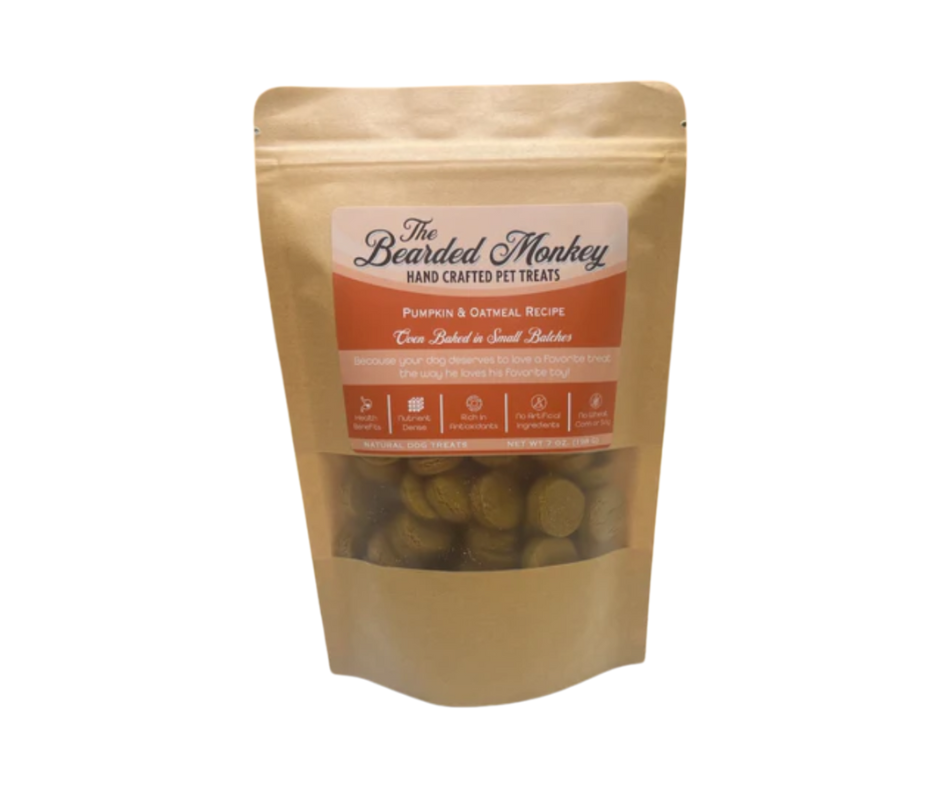 Dog treats made by the Bearded Monkey in Tennessee. Made for functional snacking.